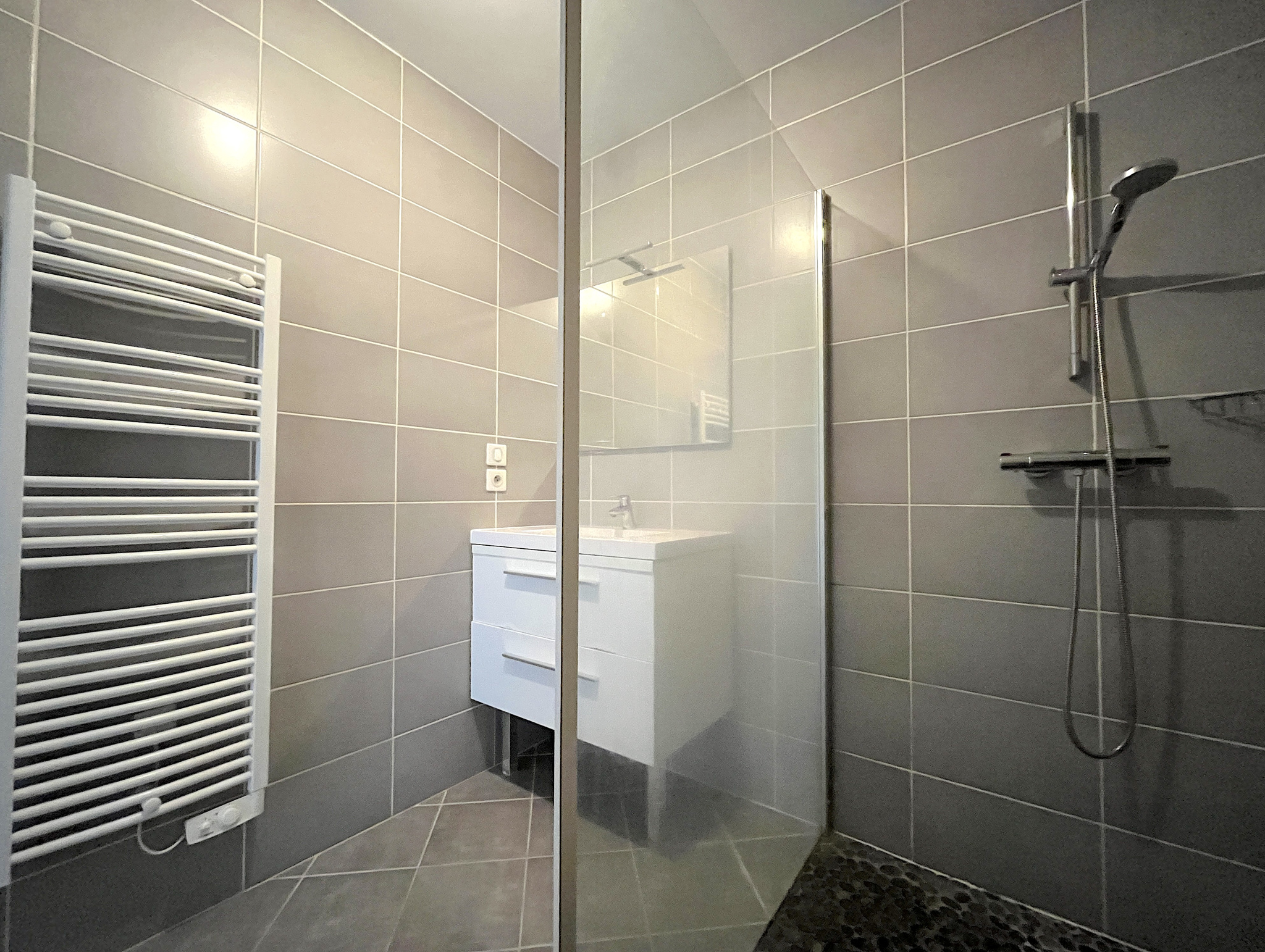 Une terrasse généreuse, sans vis à vis, est en exposition SUD